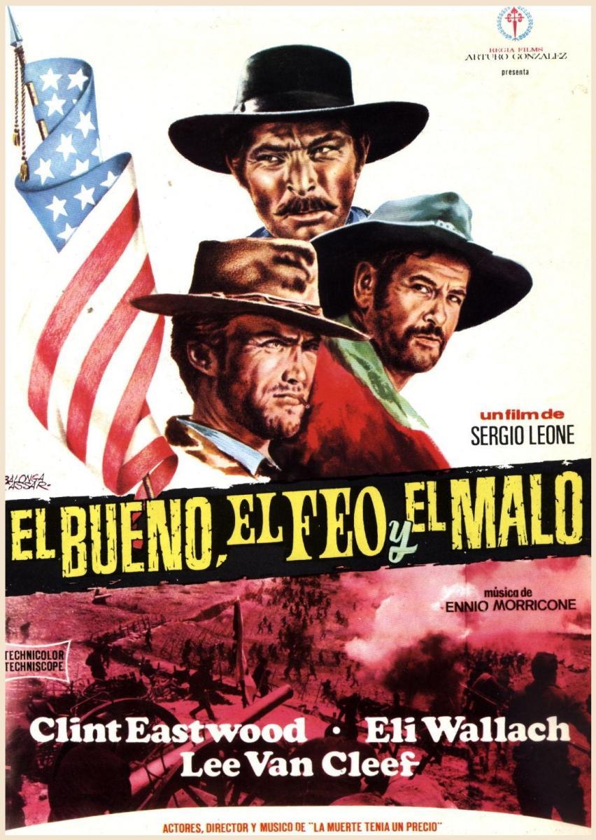 | Durante la Guerra de Secesión, tres cazadores de recompensas se lanzan a la búsqueda de un tesoro que ninguno de los tres truhanes puede localizar sin la ayuda de los otros dos. Tuco sabe que el tesoro se encuentra en un cementerio, mientras que Joe conoce el nombre inscrito en la tumba que lo esconde. Mientras tanto, Sentenza no duda en matar a mujeres y niños para conseguir su meta. De esta forma, los tres hombres colaboran en apariencia, pero al final intentarán eliminarse mutuamente. | ||