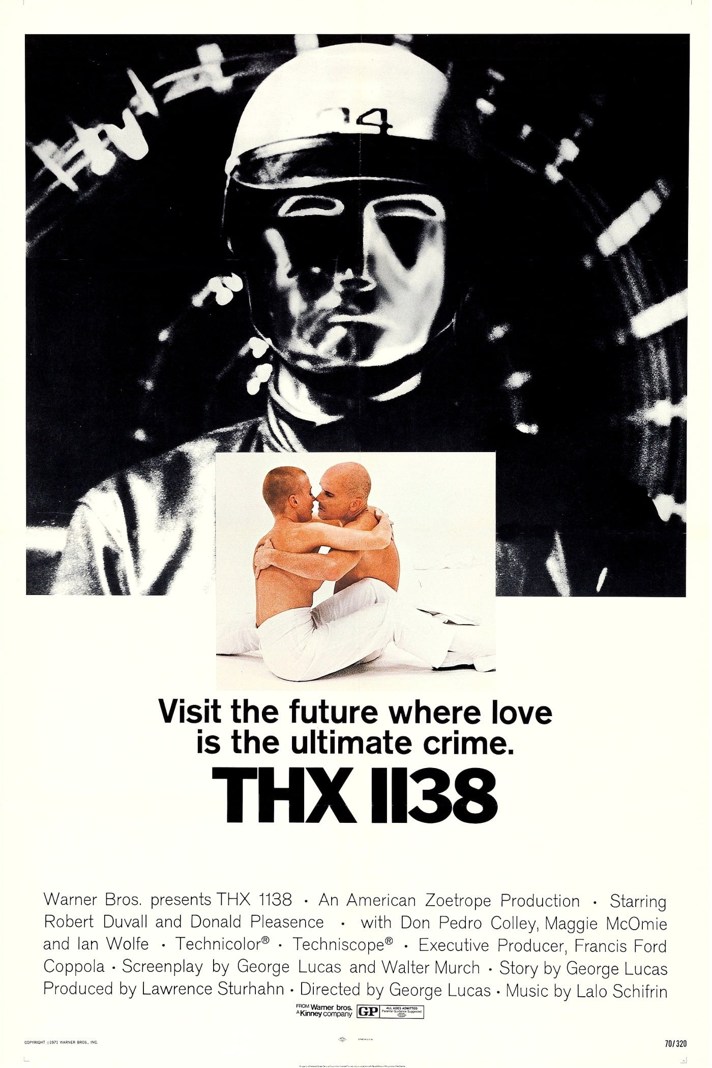 | La gente, en el futuro, vive en una sociedad totalitaria. Un técnico llamado THX 1138 lleva una vida mundana entre el trabajo y el consumo controlado de drogas que el gobierno utiliza para hacer de la gente unos títeres. Cuando THX decide dejar de tomar drogas, se enamora de una mujer y ambos comienzan una relación secreta. La primera película de George Lucas. | ||